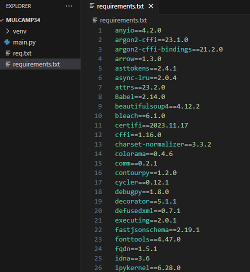 아래의 이미지를 통해서 패키지 목록이 담긴 req.txt 파일이 생성되었음을 확인할 수 있다.
