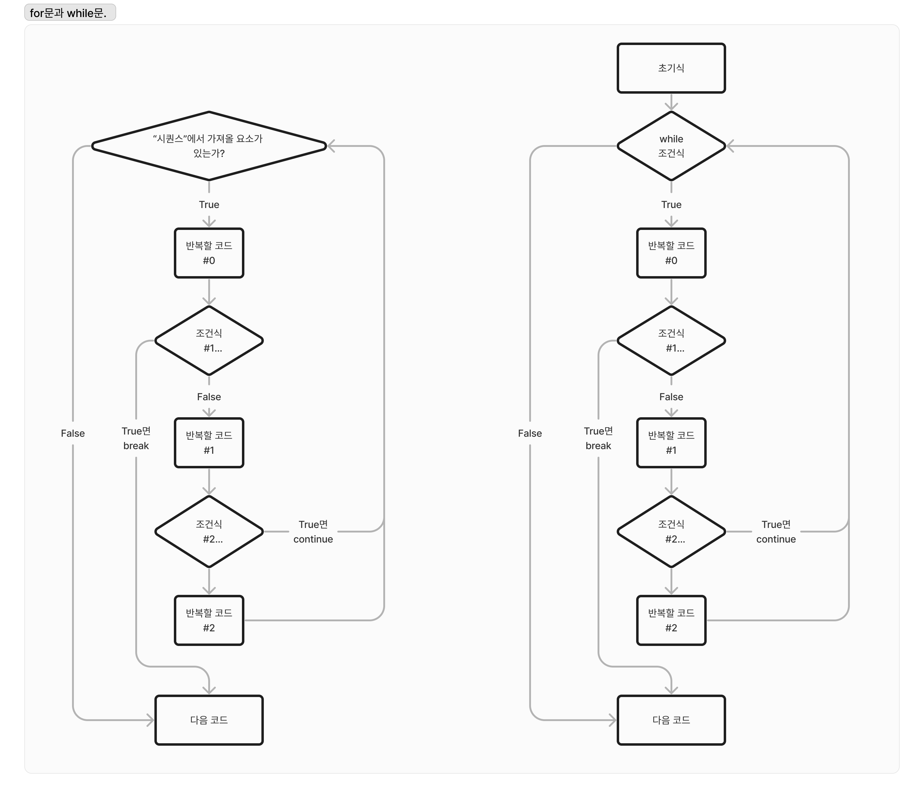 아래의 for문을 예시로 이해가 가능하다. while도 마찬가지.